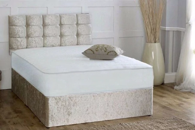 Cream Crushed Velvet Single Divan Bed with Mattress Sale