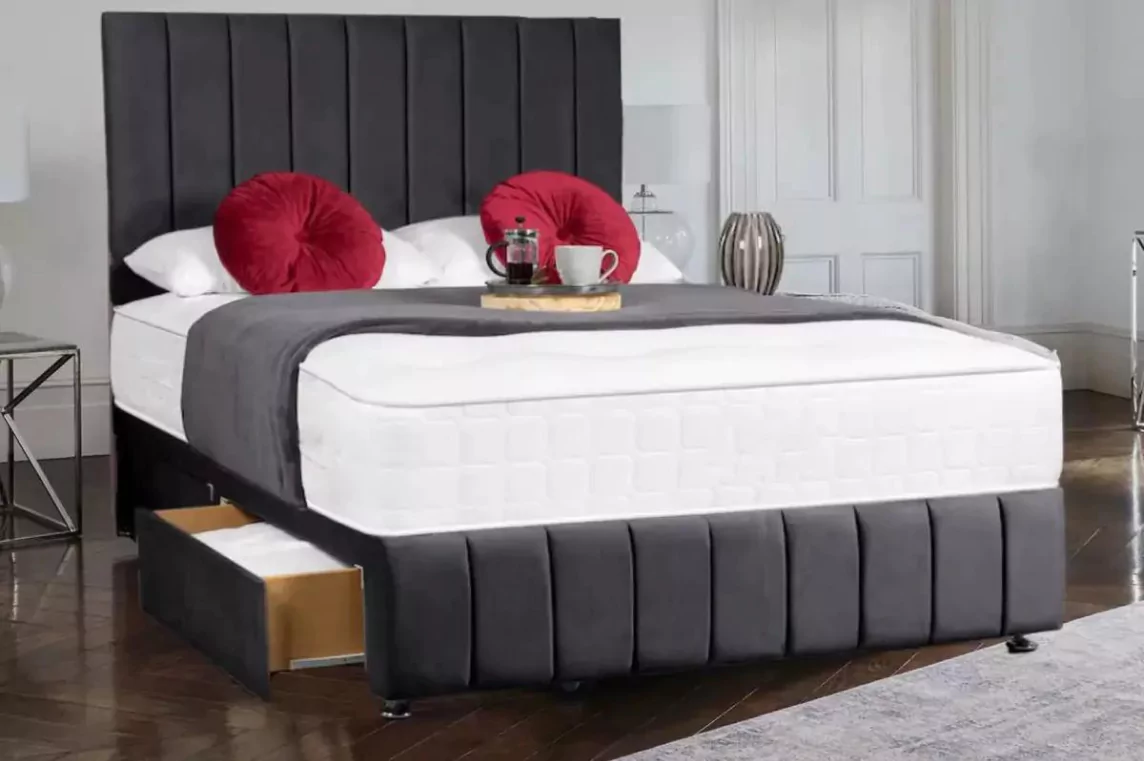 Royal Suede Grey Divan Bed Set Sale All Sizes Available