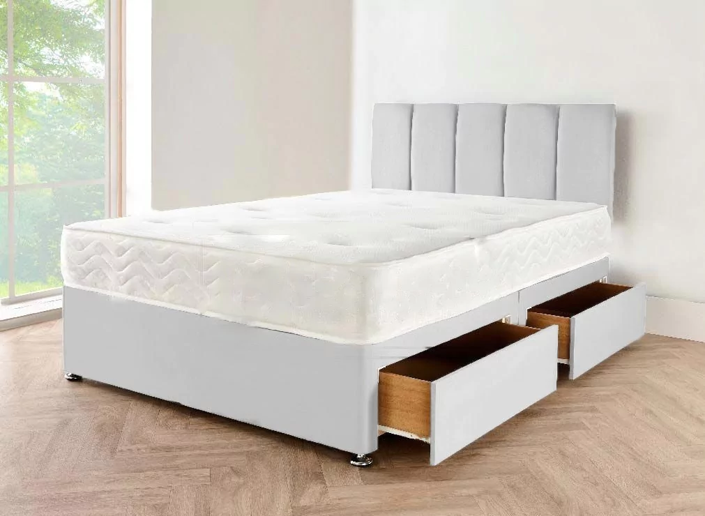 Grey Suede Divan Bed Set with Foot end Drawer – Available in All Sizes