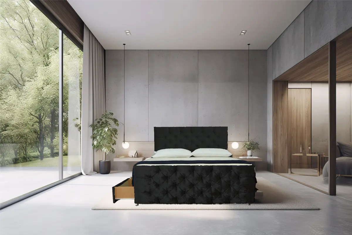 Harmony Haven Suede Black Divan Bed With Headboard and 4 drawers