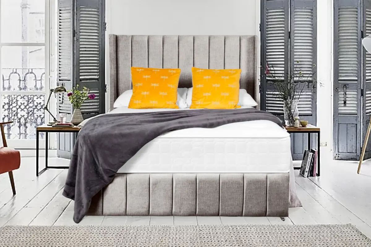 Linen Grey Divan Bed With Cube Headboard and Mattress